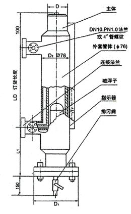 二、蒸汽伴熱式磁浮子液位計(jì)尺寸圖及安裝示意圖:
